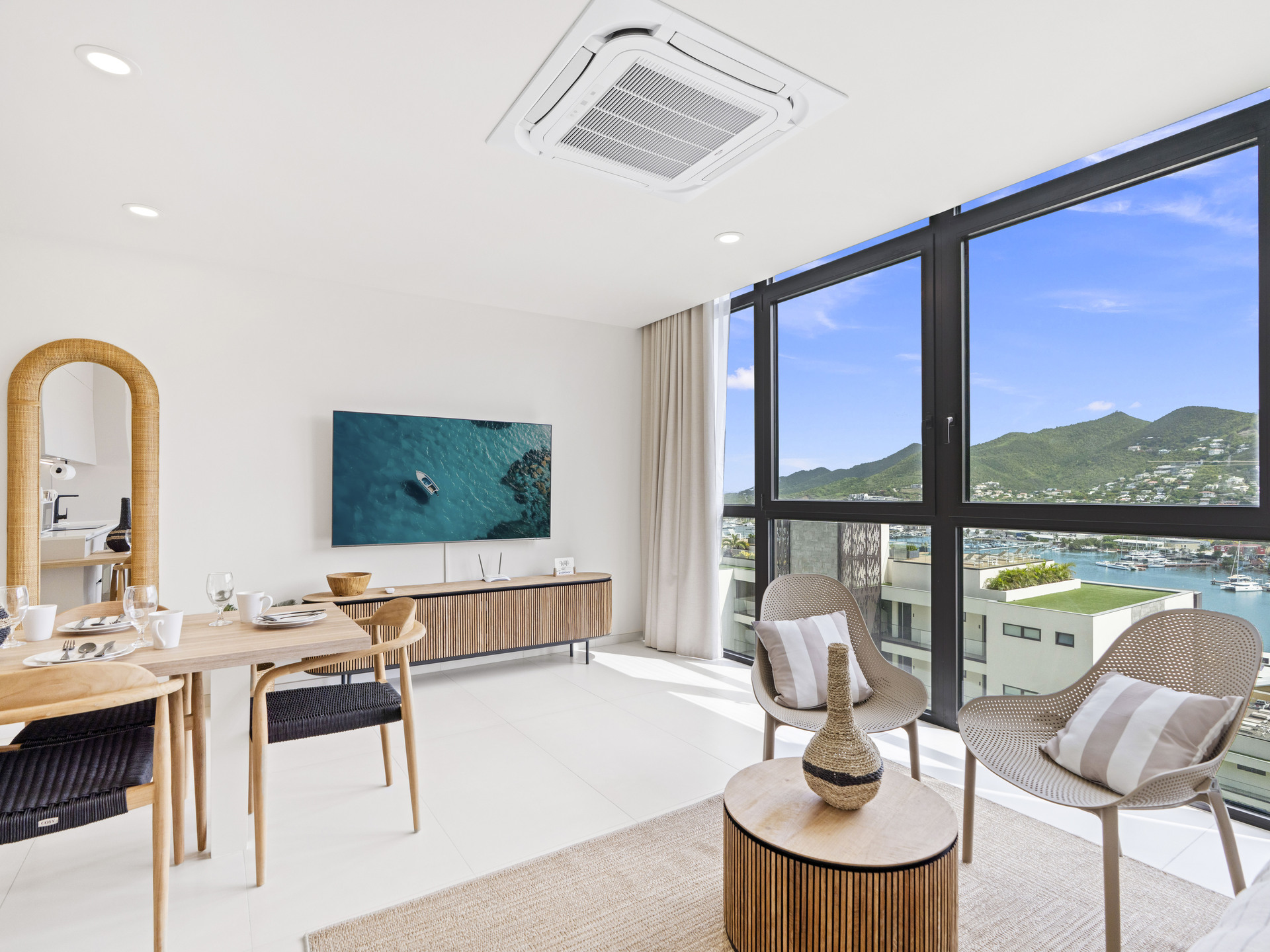 Découvrez le mélange ultime de confort et de paysages à couper le souffle dans ce charmant appartement d’une chambre et d’une salle de bain, situé au deuxième étage du Bâtiment C à The Hills Residence. Idéal pour les couples ou les aventuriers en solo, cet espace offre un emplacement privilégié avec des vues magnifiques sur le lagon de Simpson Bay.