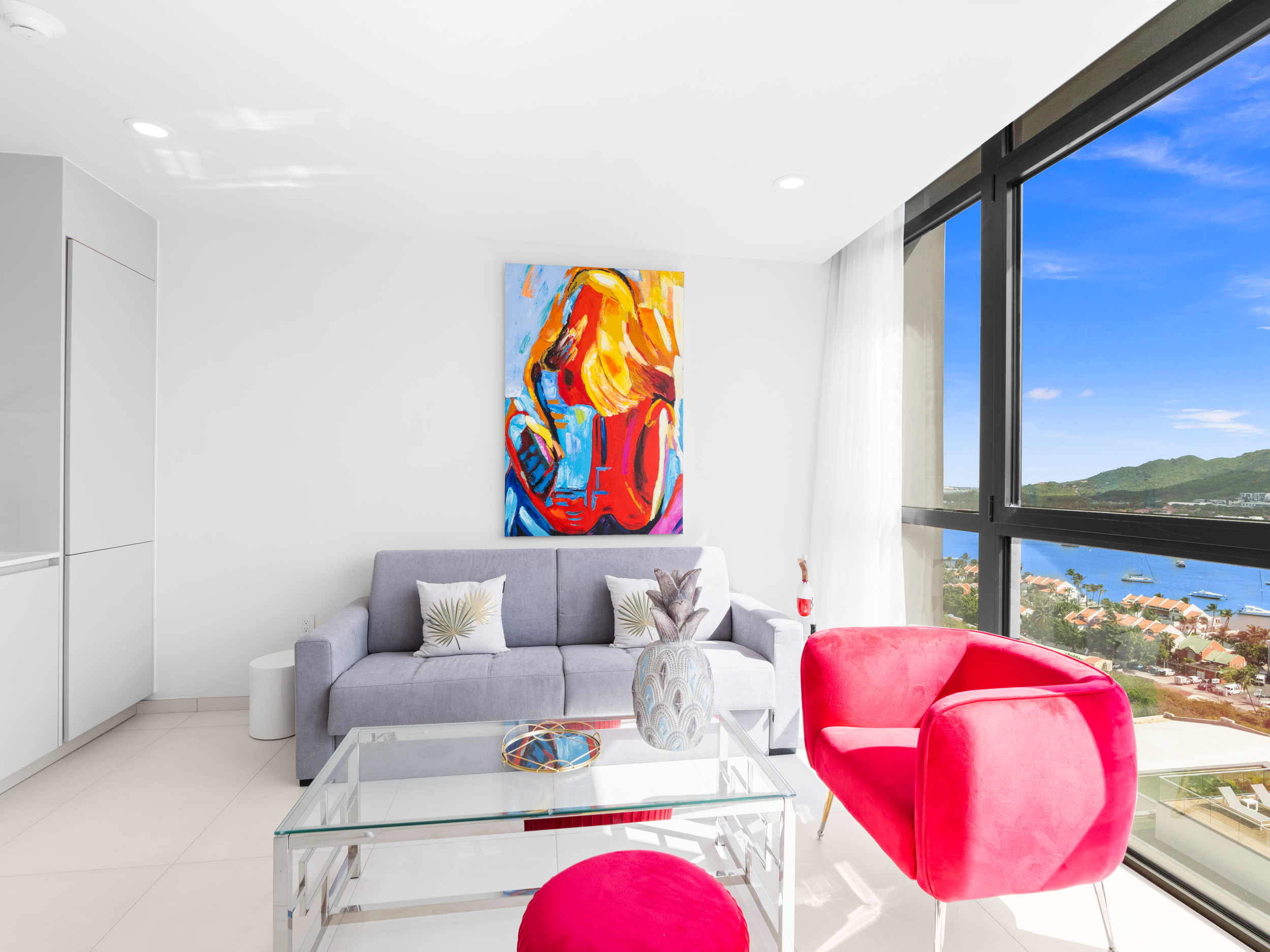 Perché au dernier étage du bâtiment 3, l’appartement C-355 offre un luxe inégalé avec une vue imprenable sur le lagon de Simpson Bay. Ce magnifique appartement d’une chambre allie sophistication moderne et confort ultime, en faisant le refuge parfait pour la détente et le ressourcement.