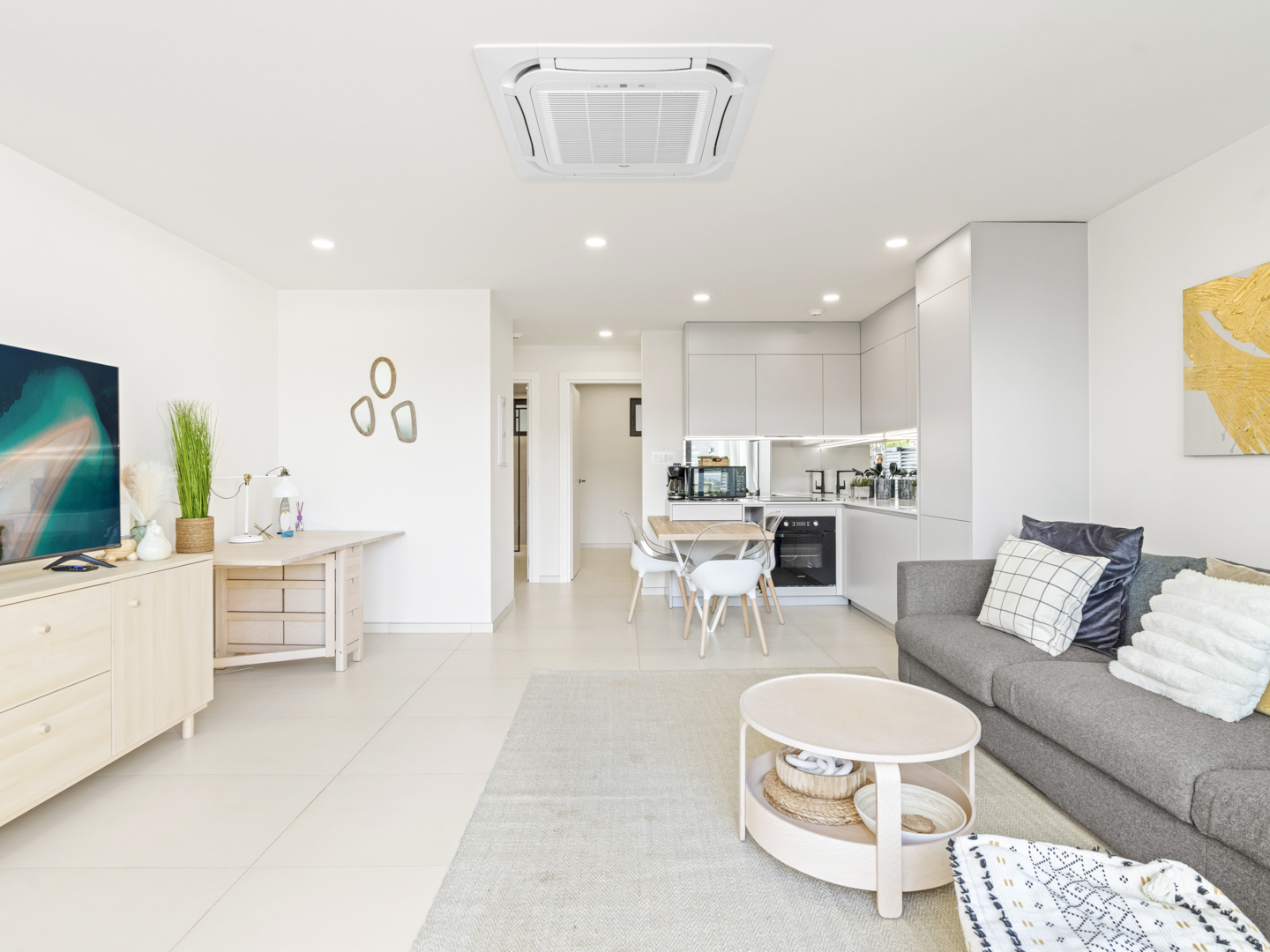 The fully equipped, modern kitchen is ready for anything from quick breakfasts to gourmet dinners. State-of-the-art appliances and a seamless layout ensure that every culinary experience is a pleasure, all while staying connected to the living area.