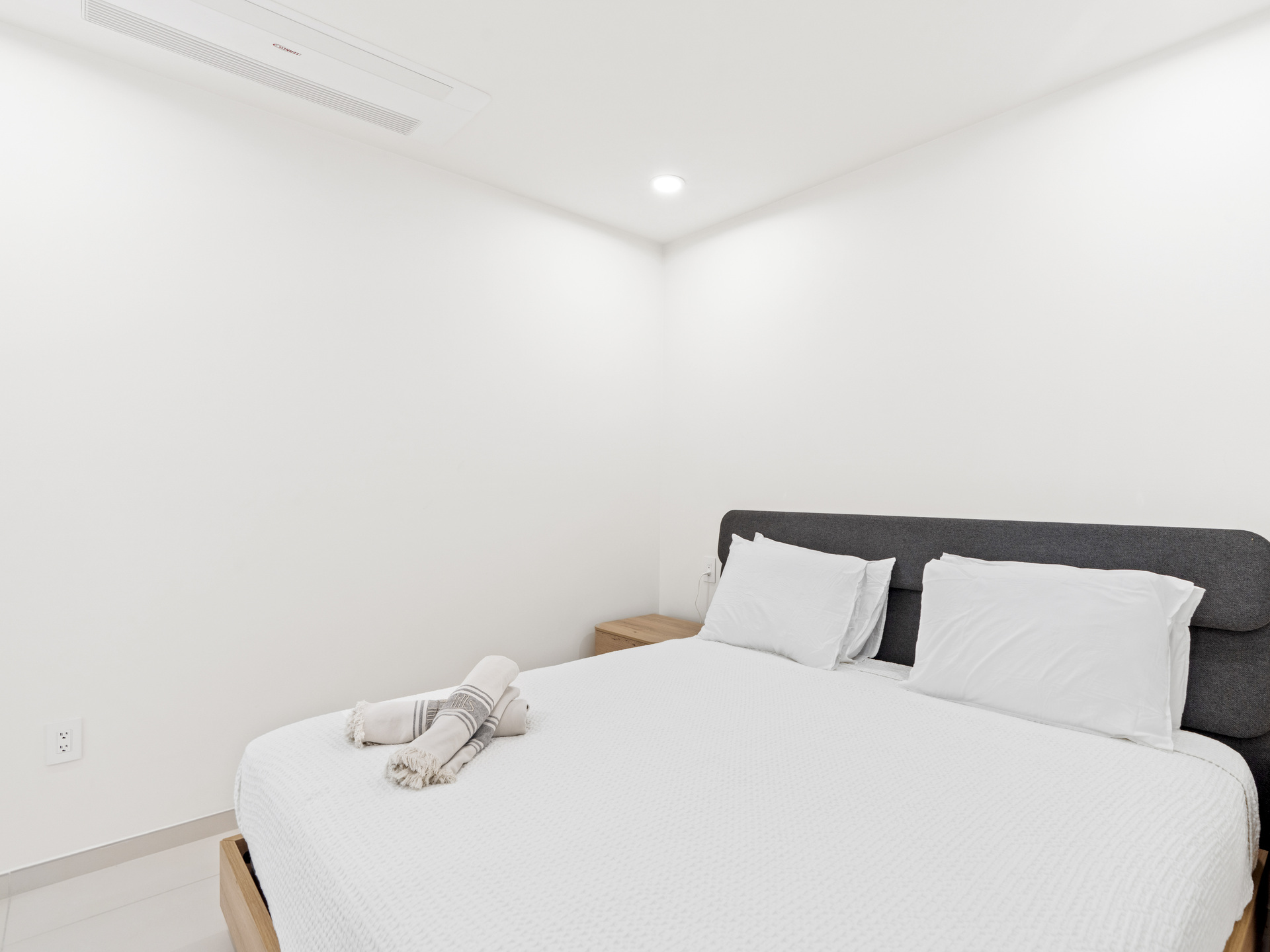 This modern 1-bedroom, 1-bathroom apartment is located in Building C on the third floor of The Hills Residence, offering a comfortable stay with everything you need to enjoy Sint Maarten.