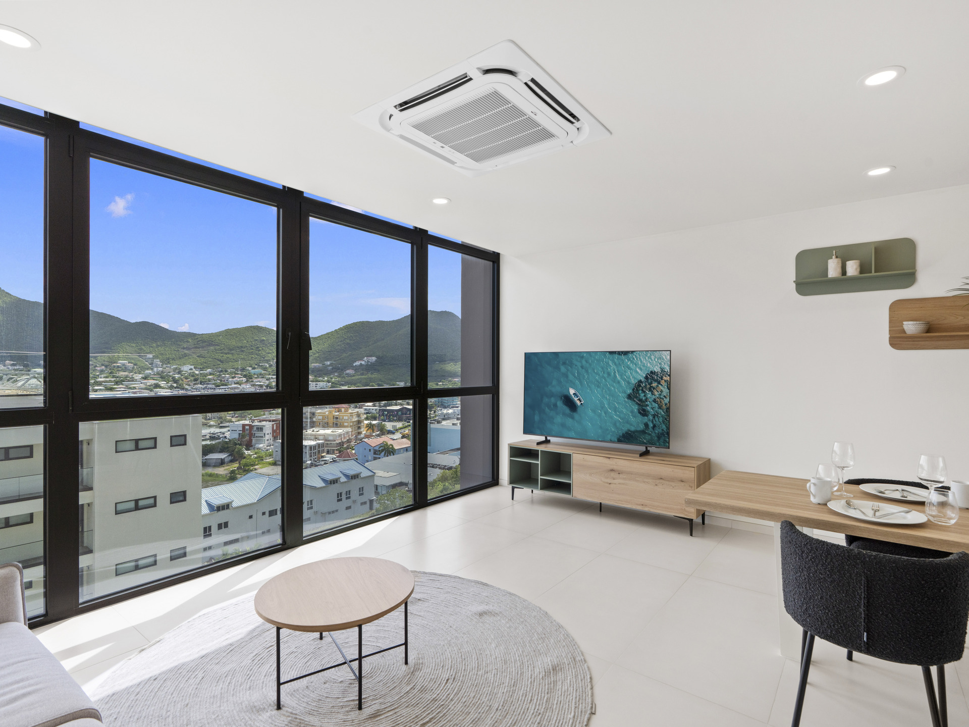 While this unit doesn’t feature a lagoon view, guests still enjoy access to The Hills Residence’s amenities, including the rooftop pool and jacuzzi — perfect spots to relax and enjoy the Caribbean atmosphere.