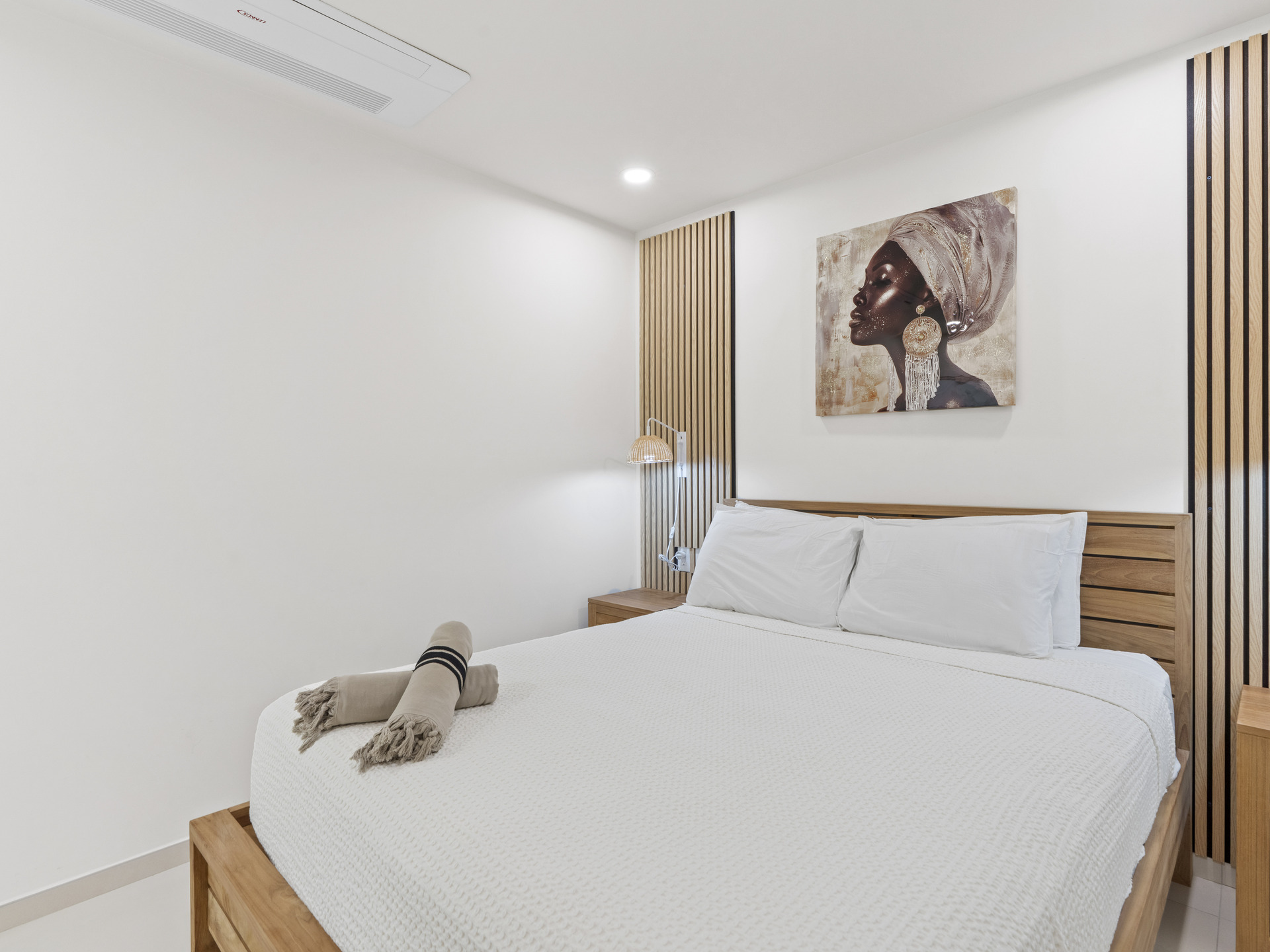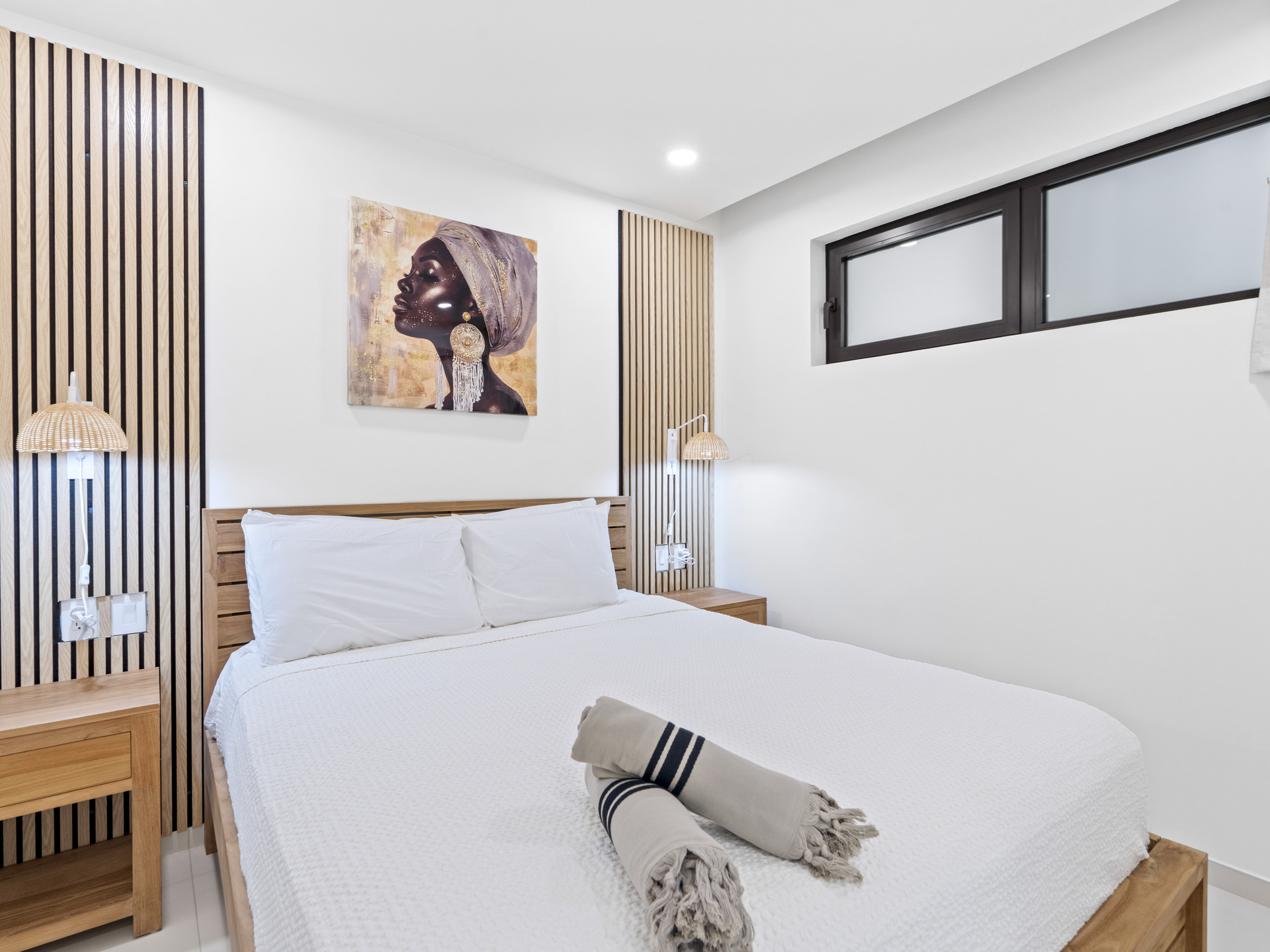 The modern kitchen is equipped with premium appliances, sleek cabinetry, and ample counter space, making it a joy to prepare meals at home. The bedroom is a tranquil retreat designed for comfort, while the bathroom offers a spa-like atmosphere with elegant finishes and a luxurious rain shower.