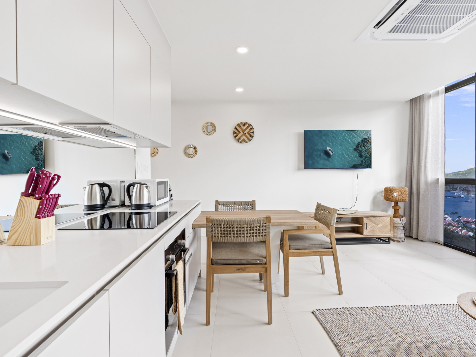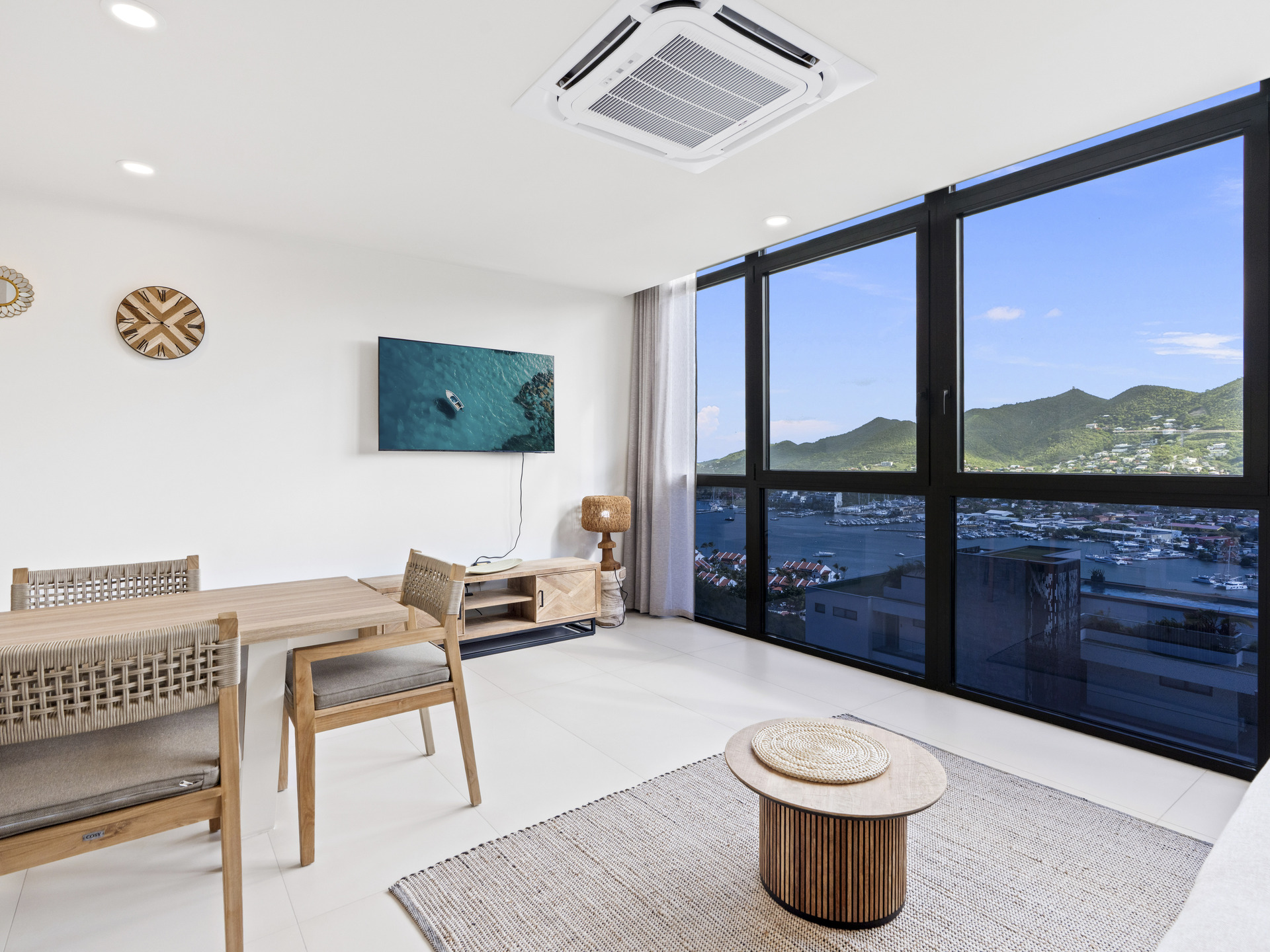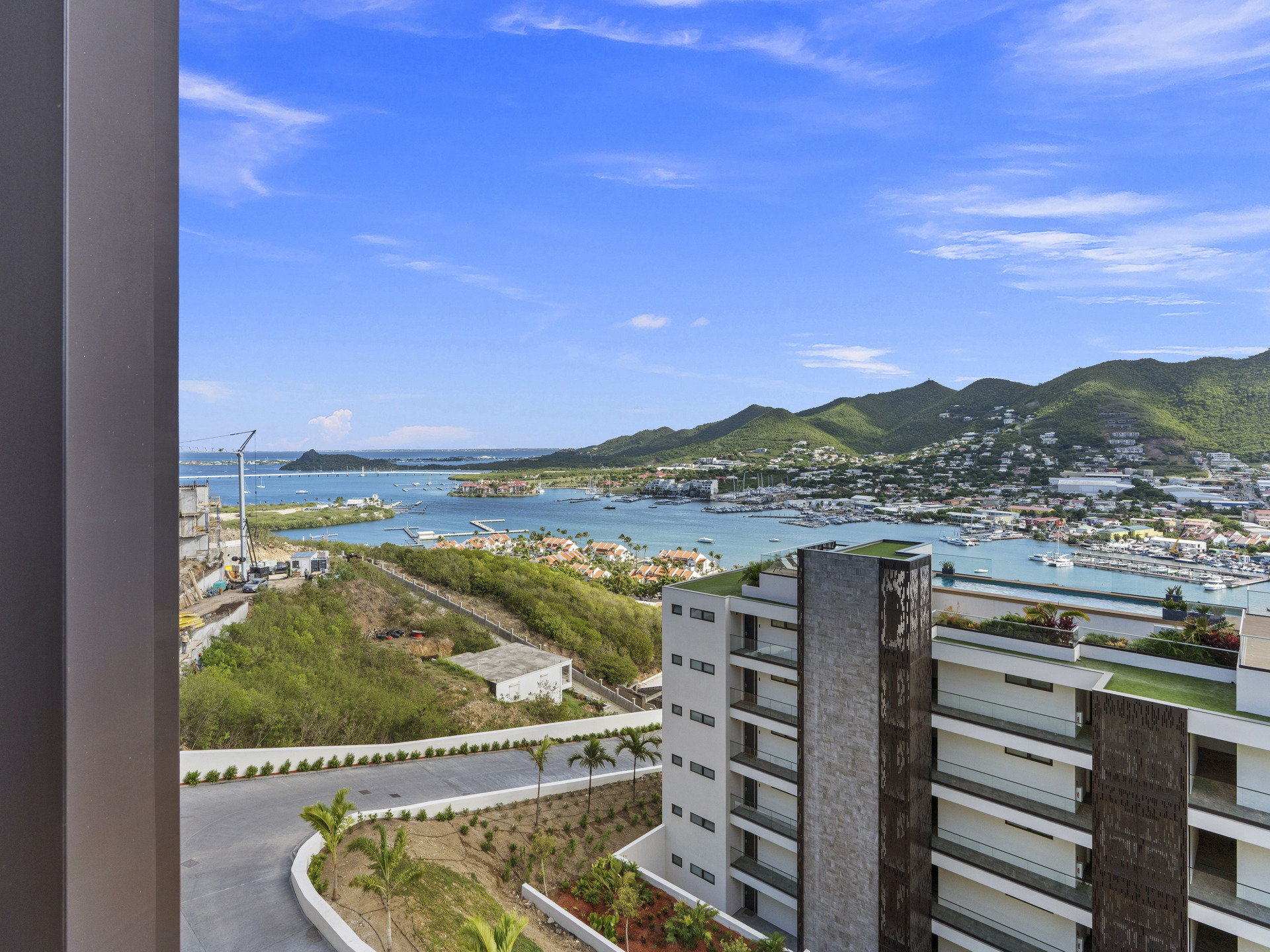 Perched on the 3rd floor of Building 4, this sophisticated home offers spectacular views of the ocean, Anguilla, the lagoon, and the lush surrounding mountains, creating a serene and luxurious living experience.