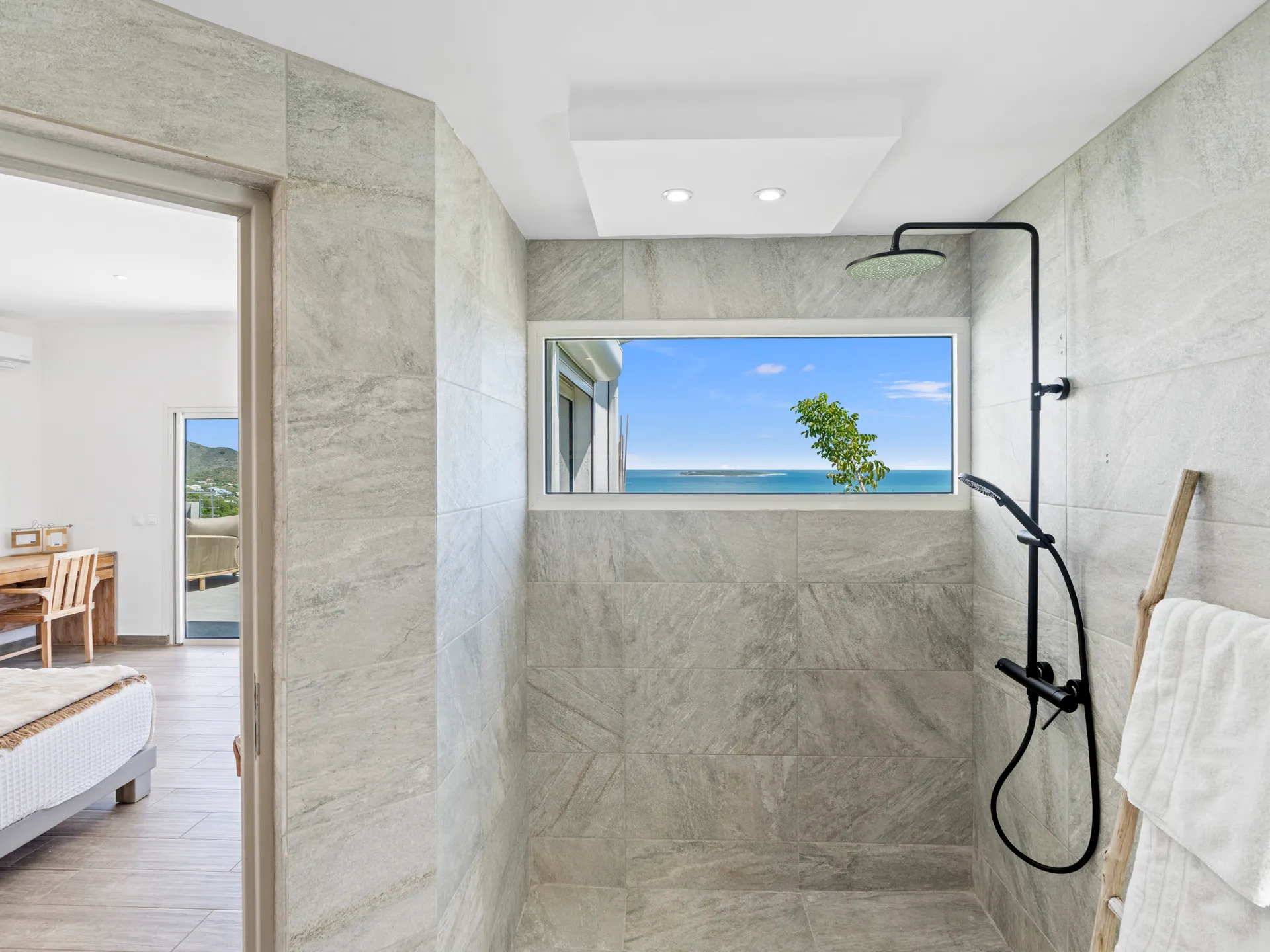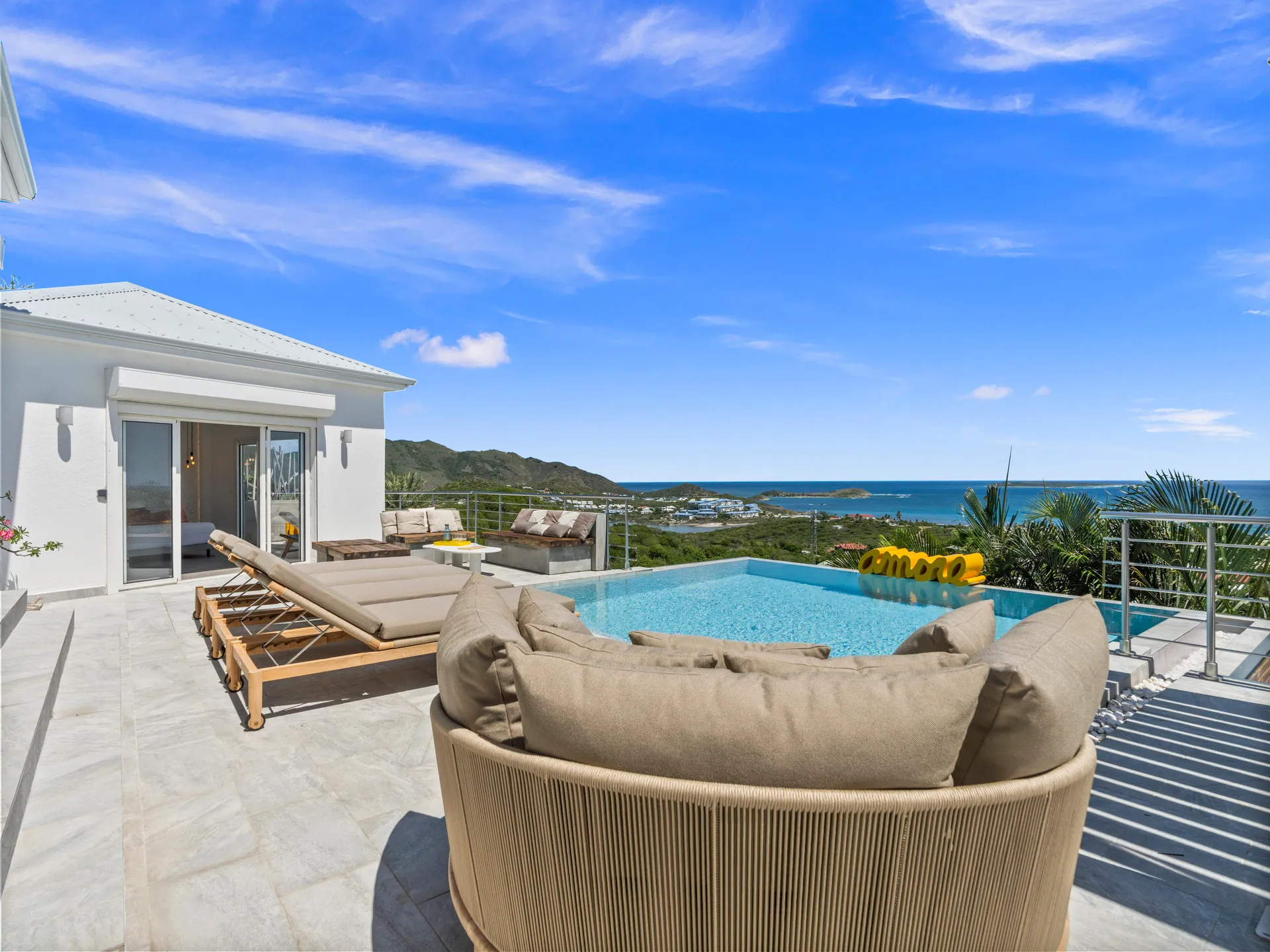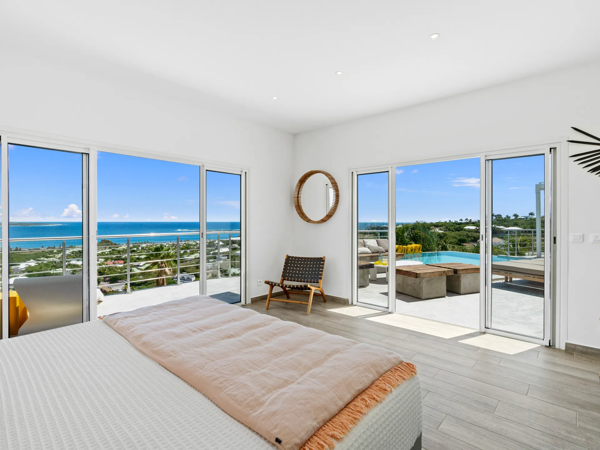 Situated at the top of the hill, this luxurious villa provides a panoramic spectacular view of Orient Beach. Imagine waking up to vibrant sunrises over the turquoise waters or sipping a glass of wine on the terrace as the sun sets over the horizon. This breathtaking scenery sets the tone for a truly serene and memorable stay.